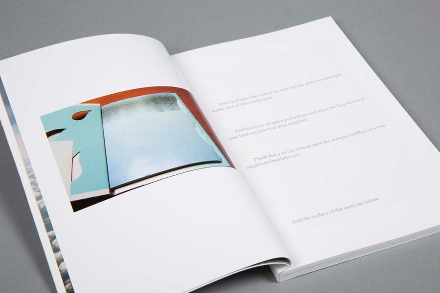 The text in Threshold is a lyric essay on the senses that gives instructions to the reader on what to experience when traveling. Snapshots made in Japan and the U.S. interlace with the text by providing context, playing directional games, and making slight jokes.